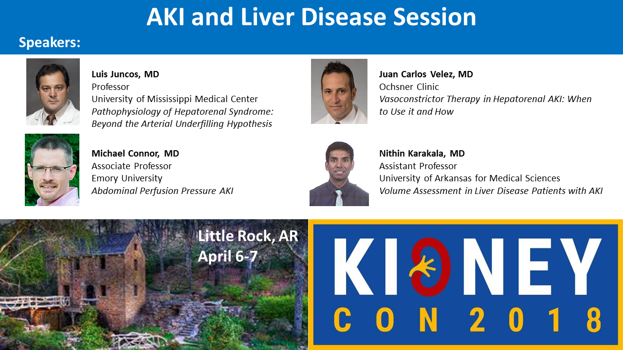 #KIDNEYcon AKI and Liver Disease Session Saturday, April 7 The Little Rock Marriott John ArthurOctober 9, 2017 Facebook0 Twitter LinkedIn0 0 Likes